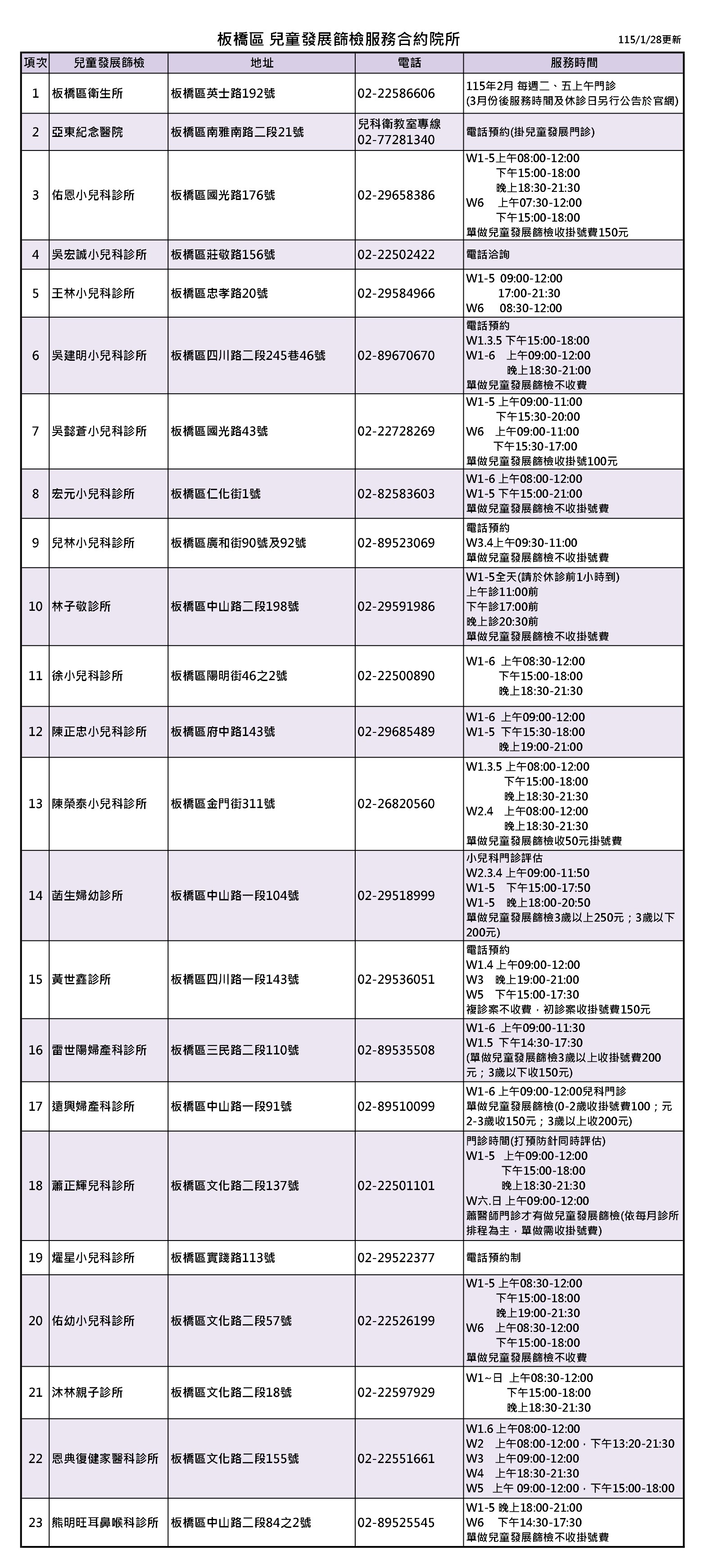 兒童發展篩檢服務-板橋區合約醫療院所