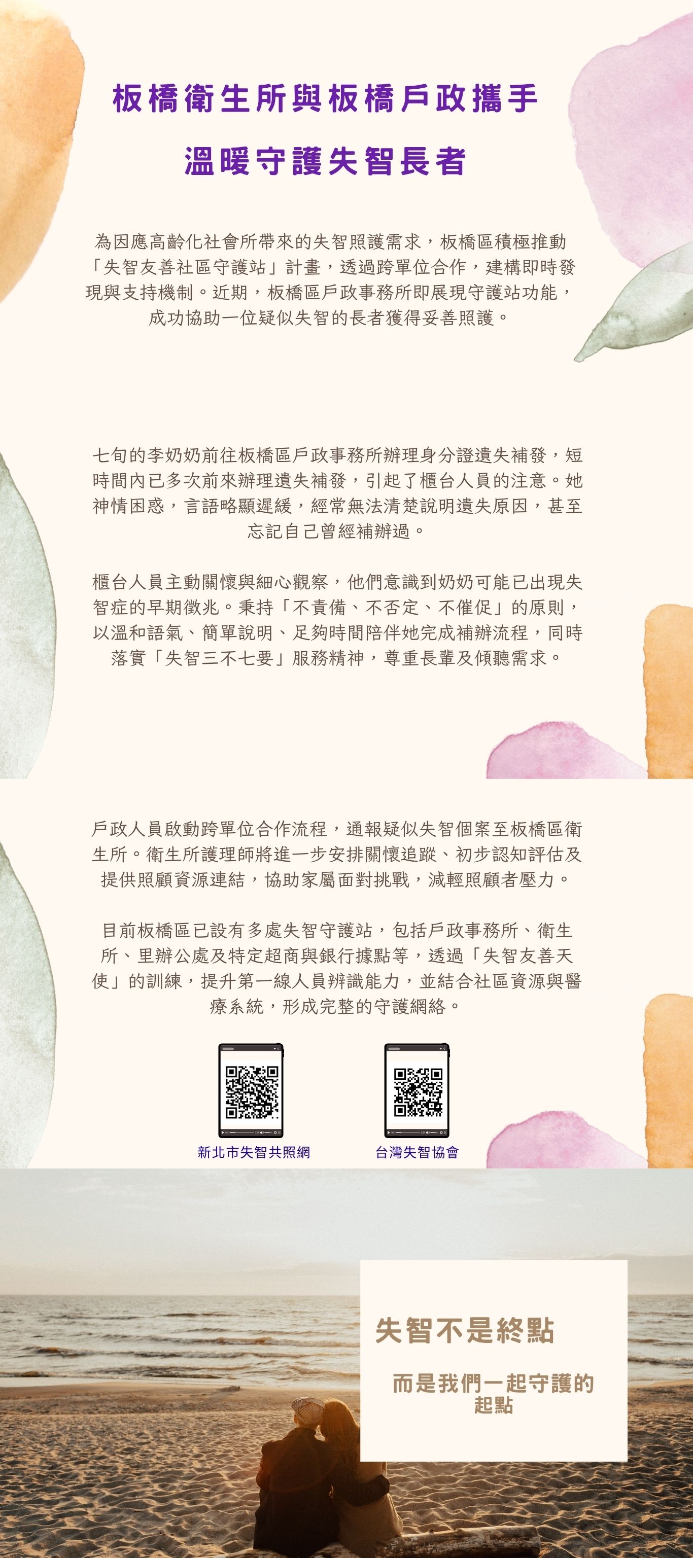 板橋衛生所與板橋戶政攜手,溫暖守護失智長者
